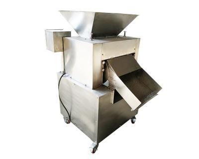 工作原理:飛刀繞自身軸線在固定不動的底刀間隙內旋轉,從而使果蔬破碎,轉子上有四組飛刀,底刀為一組,視果蔬種類不同,出料斗有斗式和管式兩種型式。在進料斗上部加上緩沖裝置,可得到粒度更細的物料。