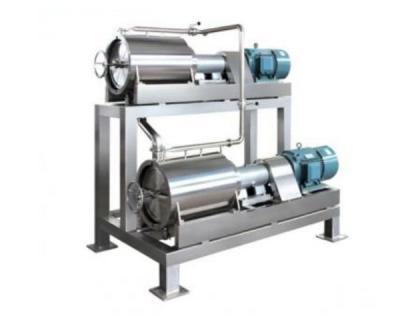 1、開機:開機前首先檢查轉(zhuǎn)動部件各零件的聯(lián)接是否牢固可靠、電動機轉(zhuǎn)向與標牌是否一致,再向兩端軸承加進20號機械油,檢查軸內(nèi)所有螺釘是否松動,筒前蓋螺栓是否緊固,檢查無松動后,方可開機。然后均勻加進物料,切勿沖擊。視出渣出漿具體情況,適當調(diào)整刮板的螺旋角及刮板與篩網(wǎng)的間隙使渣子的含汁率達到工藝要求。